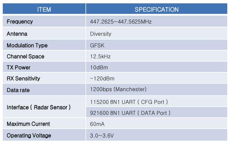 - KJM-AD0360 is a 447MHz RF Module with diversity antenna.