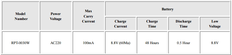 - Back up Battery: 3.7V 250mAh, Ni-Ion