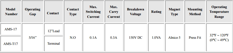 - UL Listed - 5/16” operating gap - Alnico 5 magnet - Optional AD-17 adapter available - Available in white, brown, or ivory Specifications_PDF