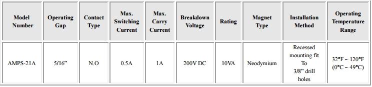 - N/O Loop - 0 to 5/16” operating gap - 36” jacketed cable, AWG #22 - Colors: White Specifications_PDF