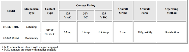 - HUSD-15BM: momentary button – auto-reset